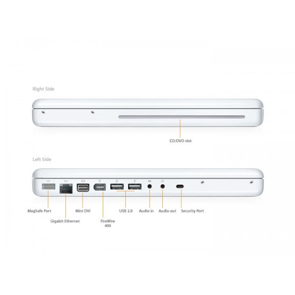 MacBook makes it easy to hit the road thanks to its tough polycarbonate case, built-in wireless technologies, and innovative MagSafe Power Adapter that releases automatically if someone accidentally trips on the cord.